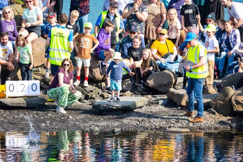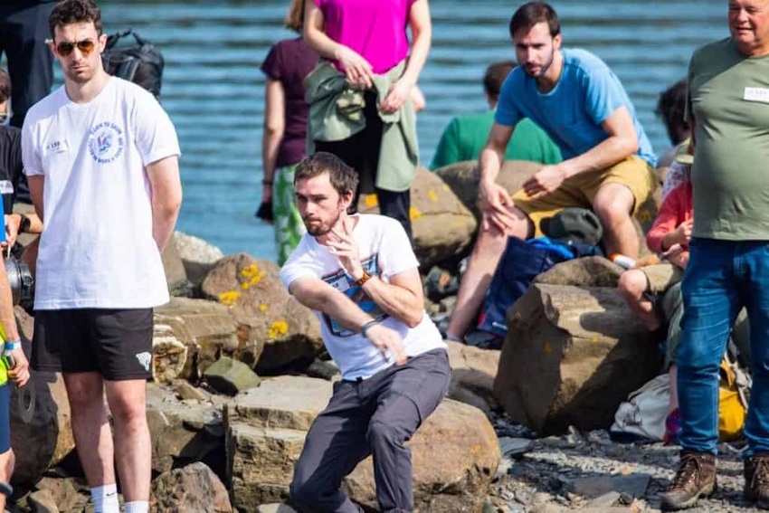 Εκατοντάδες συγκεντρώνονται στο πλημμυρισμένο λατομείο του νησιού για να δοκιμάσουν μία ικανότητα σχεδόν παγκόσμια, αλλά σπάνια καταγεγραμμένη: την ικανότητα να στείλει κανείς μια πέτρα να «χορέψει» πάνω στο νερό, να αναπηδήσει πάνω του. Το Παγκόσμιο Πρωτάθλημα Ρίψης Πέτρας (World Stone Skimming Championships) έχει γίνει γνωστό, για περισσότερες από δύο δεκαετίες, όχι μόνο για τη γοητεία του αλλά και για την καθαρά δημοκρατική του φύση. Εδώ, παιδιά διαγωνίζονται δίπλα σε έμπειρους βετεράνους και η νίκη καθορίζεται από τίποτε άλλο πέρα από τη γωνία, τη δύναμη και την τύχη.