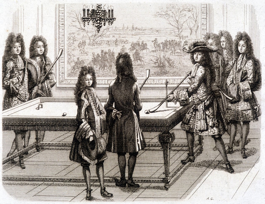 Σύντομα όμως, το παιχνίδι μεταφέρθηκε σε εσωτερικούς χώρους. Η βροχή και το κρύο δεν άφηναν τους ευγενείς να απολαύσουν το αγαπημένο τους παιχνίδι. Έτσι, τοποθετήθηκε ένα ειδικό τραπέζι με τσόχα, που προσομοίαζε το πράσινο γρασίδι, και γύρω του προστέθηκαν ξύλινα κάγκελα για να μην πέφτουν οι μπάλες. Η ιστορία λέει ότι ο Γάλλος βασιλιάς Λουδοβίκος ΙΔ' λάτρευε τόσο πολύ το μπιλιάρδο, που είχε ένα τραπέζι στο δωμάτιό του, και μάλιστα το αποκαλούσαν «ο βασιλιάς των παιχνιδιών και το παιχνίδι των βασιλιάδων».